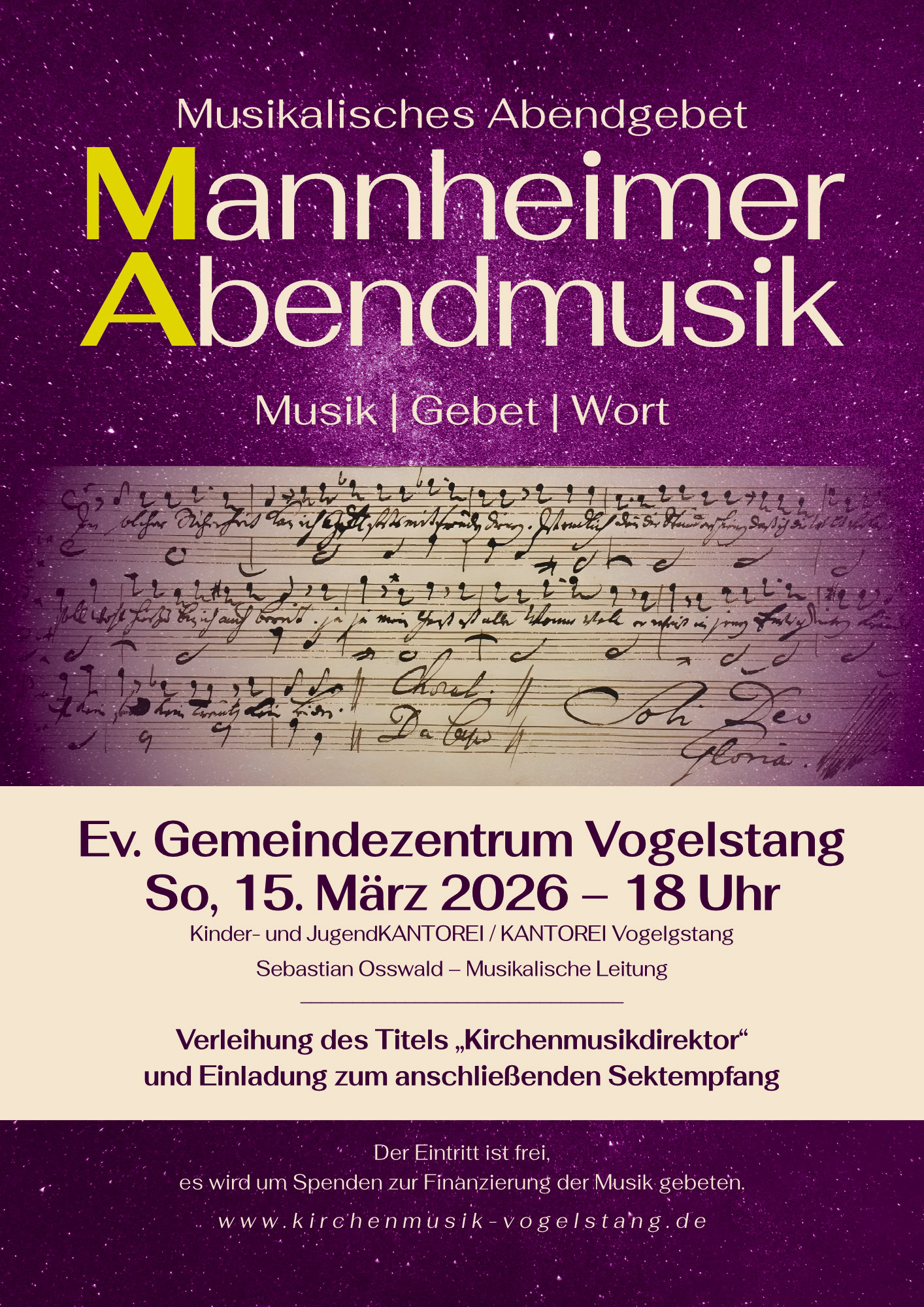 Anschließend Verleihung des Titels „Kirchenmusikdirektor“ an Kantor Sebastian Osswald und herzliche Einladung zum Sektempfang!